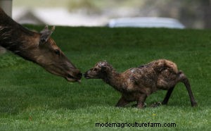 The timing of calving should be similar to the wild ruminants in the area. Nature led them to birthing after sufficient growth of new grass to build up flesh from their natural loss through winter. A cow, like the wild animals, should have at least a month to gain weight as this increased weight before calving is recognition of the importance of nature’s natural cycle.