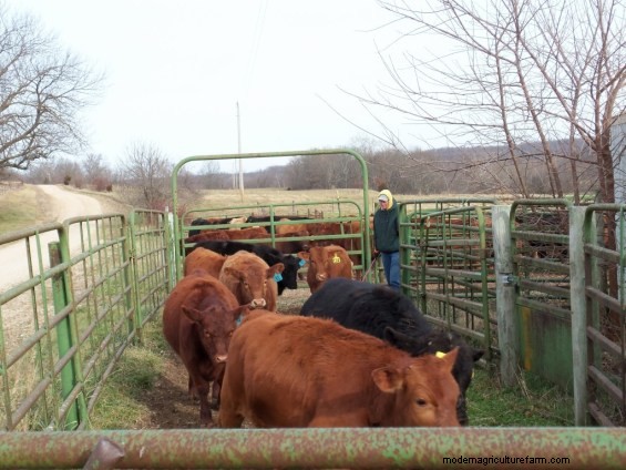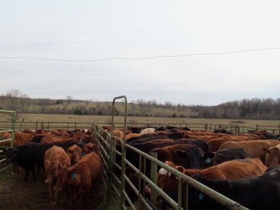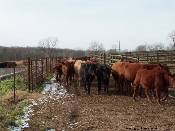 Our pens are located in the center of our farm so we make it a habit to bring the cows through the pens as we move them from pasture to pasture. Some days we’ll lock them in for an hour or so just to let them become used to being there and not feel they will always be worked when the gates are shut.
