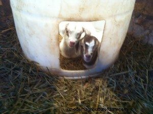 Occasionally you’ll get a doe who is a bad mom and doesn’t want to feed her babies. I had a couple of solutions for this. One was to tie the doe up and let the baby nurse. This meant numerous visits to the barn until the baby was strong enough to sneak milk from all the other does, or it’s mom gave up and decided to take care of it. The other solution was to get another mother to adopt the abandoned baby. This works best if the mother has just given birth. Grab the placenta and rub it all over the abandoned baby so that it smells right to the mother and then keep the adoptive mom and the baby in a very small pen with all her other offspring. The long term solution to this problem is to send the bad mom down the road as soon as possible. (On Pasture Community, if you have other suggestions, share them in the comments below!)