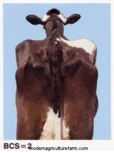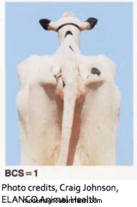 For dairy cows, a BCS scale is used that ranges from a score of 1, which is for cattle that are very thin, to 5, which is for cattle that are excessively fat. Body condition scores will vary from one evaluator to the next. As long as the same individual evaluates the animals each time and that person is consistent in assigning scores to a cow, the information will be very useful. Changes in body condition score are what are important.