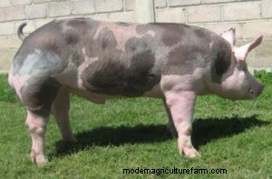 One of the most striking and common tell-tale signs of crossbreeding is when Piétrain genetics are crossed into a breed. This is particularly problematic with Tamworth, Berkshire and Hereford hog populations today. The Piétrain pig is distinctive with its long body and “double muscled” legs. When crossed into a heritage breed, the cross will produce fast growing pigs with that long lean body supported by heavily muscled legs. As early as one month of age these piglets will already begin to show heavy muscling. Unfortunately, the show ring favors this body type over the traditional “dirt hog” of days past, so they are becoming more commonplace and are a threat to preserving the historic breed genetics.