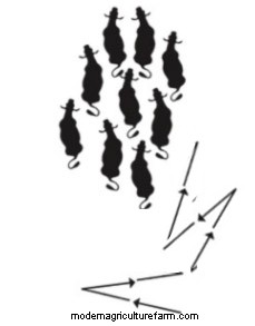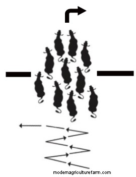 If you remember, if we drive cattle from the rear with the straight-lined zigzag, they will generally move away straight at a 90° angle to the baseline of our zigzag.