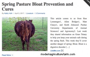 Majak, W., J. W. Hall, and W. P. McCaughey. 1995. Pasture management strategies for reducing the risk of legume bloat in cattle. J. Anim. Sci. 73:1493.