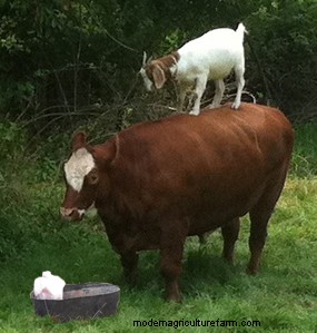Please keep in mind that I am not a vet or a consultant, but I am happy to report that our goats have complete access to our cattle mineral tubs. For the most part, they ignore the minerals. On occasion, one will take a bite, and in moments the entire flock will mob the supplement tub. This causes my nutritionist to cringe, but so far, I’ve seen no problems, as in, no dead goats. Also, I can see no way to avoid the issue, other than getting rid of the goat enterprise.