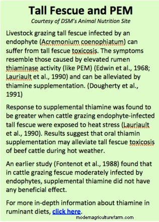 I am not a veterinarian, nor is Richard Ekhardt, who’s quoted in this piece. This is just information you can use to inform yourself. Be sure to consult your own veterinarian about PEM and any other problems you may find in your herd.