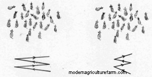 A second way to gather a pasture is from the back. For example, Bud and Eunice Williams worked on a large mountain ranch that always took five riders two weeks to gather one particular pasture and they never got them all. In contrast, by zigzagging in the rear in a “T” to the gate, it took Bud and Eunice 1 1/2 days and they didn’t miss anything.