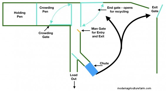 While her early graphics looked a bit like engineering drawings to me, as I studied and practiced her methods the results were very positive. Eventually, I found I could rely less and less on using the crowding gate as a physical force, relying instead on proper herding technique to help the cattle find the escape provided by the alleyway. The fact is, our old design worked pretty darn well, especially as our skills improved.