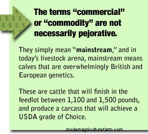 If you are a direct marketer, or if you are running a ranch for reasons beyond business, you get to choose what to do, and I mean ANYTHING! And that’s perfectly alright. But let’s be clear about something: most novelty cattle will not work in the mainstream “commodity” market, because genetically speaking, they don’t fill the bill. If you can sell your calves to other folks who want to do what you’re doing, great. But if you send them to the auction yard they will be severely discounted.