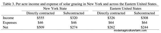 In 2018, ASGA partnered with Cornell University on a survey of solar grazing. See Table 3 extracted from the survey for the numbers reported by respondents, and how they compare with my numbers.