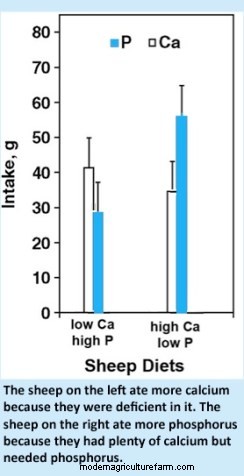 We have several studies by Utah State University’s Juan Villalba to thank for this new information. Juan looked at calcium and phosphorus deficiencies in lambs. In the first study, lambs avoided phosphorus (P) when it was fed in excess, and increased their preference for it when they were deficient in it. In another study, sheep on phosphorus-deficient diet increased intake of a Phosphorus supplement when they had a choice between a phosphorus or a calcium (Ca) supplement. He also found that sheep eating a calcium-deficient diet ate more of a calcium supplement than sheep fed a diet high in calcium.
