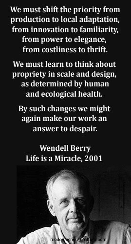Wendell Berry speaks of the propriety of scale and the law of return. The propriety of scale simply means that the operation is the proper scale for the resource base. In a livestock operation if a pasture is overstocked then it should be easy to understand that this is not the proper scale. To me the word balance makes this concept very understandable. The law of return is one of the fundamental laws of nature, it requires that the nutrients and organic matter taken from the soil be returned. This without question is the very foundation of sustainability.