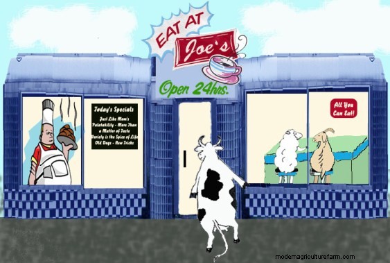 Just so you know, this something all creatures do, including humans. For example, I was in Canada on a speaking tour for a week several years ago. On the first morning, when I woke up in a new town needing breakfast, I looked out my hotel window to see what might be available. Across the street was a busy place called Tim Horton’s. I’d never seen a place like that. But, looking further down the street, I did recognize the Golden Arches of McDonald’s about a 1/4 mile away. Even though the food at McDonald’s isn’t my favorite, I at least knew what to expect there, so I bundled up to trudge through the snow and sub-zero weather to get some breakfast. I changed my behavior, when one of my trusted hosts took me to Tim Horton’s where I found a tasty selection of soups, bagels and sandwiches. Like livestock, I learned from a herd mate what to eat.