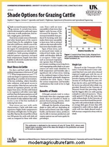 Adding some shade to pastures, especially in places where the weather is both hot and humid is both kind and good for productivity. As the authors of this fact sheet point out, reducing heat stress for beef cows and calves can increase weight gain by 1.25 lbs per day for cows, .41 lb per day for calves, and .89 lb per day for steers. For you dairy farmers, heat stress could be reducing your production too. When temperatures hit 90ºF and above, milk production can be reduced by 20 to 30% . Cool cows produce as much as 9 pounds more milk per day compared to hot cows. Shade also improves fertility. Cows with shade have higher pregnancy rates than cows without, and bulls with access to shade have higher semen counts.