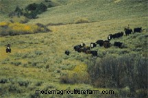 There are all kinds of ways to move animals, but the most successful take advantage of animals’ natural behavior. Twenty of the cows in the herd shown here have learned that “good things come in black tubs” so they lead the entire herd to their next location. Other folks may use a dog or a herder as negative reinforcement to move cows from pasture to pasture, and electric fence (positive punishment) to keep them where they want them. Cows who have never been worked by a dog may become stressed, but once they know what is expected of them they move more easily with less stress. The same can be said of herders on foot or horseback.
