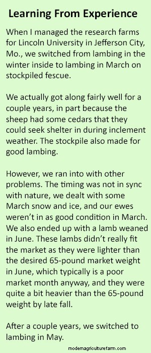 Finally, profit potential is higher. A May-born lamb hits the late fall/winter market with relative ease.