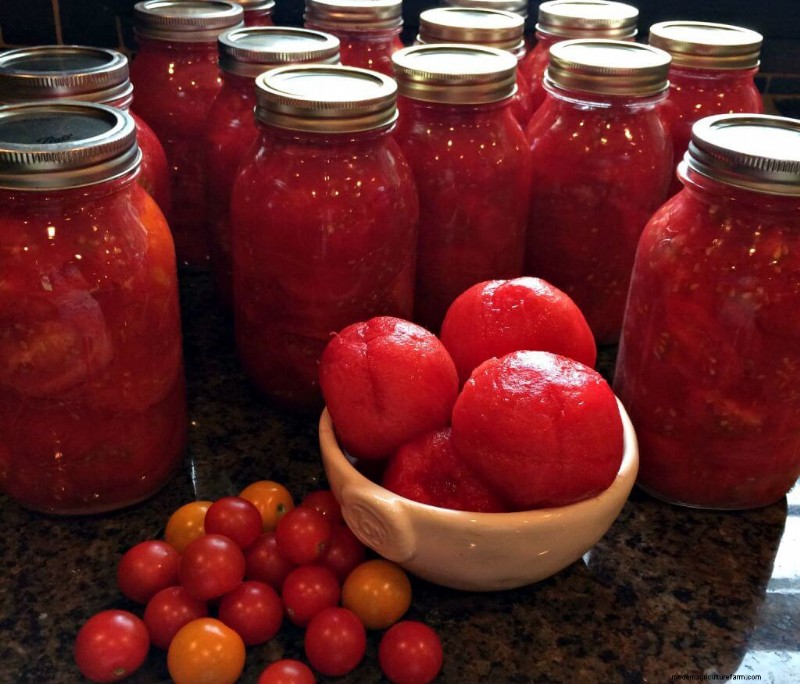 Canning Tomatoes recipe and photo by Candi of The Farm Barbie.