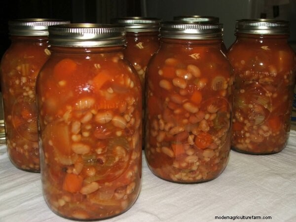 Some homesteaders put dry beans in their chili and let the pressure canning cook them. Food preservation experts warn against this. Here’s a good discussion of the topic.