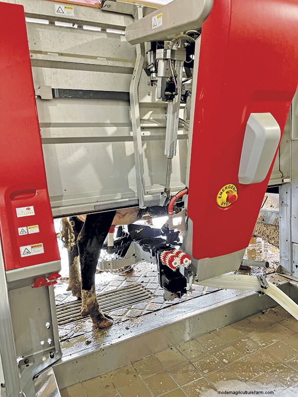 PHOTO 2: Robotic milkers can improve udder health and provide less risk for antibiotic contamination, since prepping and post-dipping is now done by a machine, according to Dr. Marcia Endres. Photos provided by Emily Barge.
