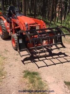 Eureka! A solution. I also post articles on MOTHER EARTH NEWS Community Colorado Facebook page and as I was posting one, it had a photo of a Kubota tractor exactly like mine. On the front end was an implement that appeared as a task saver so first thing Monday morning I called our Kubota dealer to inquire if they made one for my size tractor. It turns out they actually do make them for a compact tractor and after some discussion I had them order one for me. I had checked implements on the Kubota website but they did not show a grapple. I found out they are made by a subsidiary company called Land Pride.