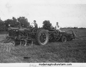 The first alfalfa I ever seeded was probably in the late 1930s or early 1940s. The seeder was like a wheelbarrow, but it had a 12 foot box on it about 4 or 6 inches square. There were holes in the bottom of the box, with a rope through the seed. This rope went back and forth driven by the wheel, and it worked the seed out. You would put stakes on the ends and middle of the field, moving the stakes every other round. You would aim at the stakes, then harrow it in the ground with horses.