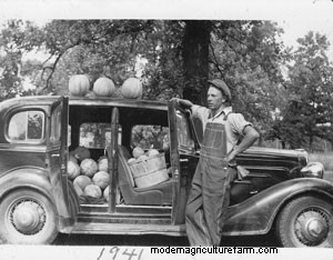 I sold sweet corn in St. Paul in the 1940s. I filled the trunk and the back seat, and went from door to door. I got 10-15 cents for a dozen. I made enough to buy a $19 suit of clothes (nice, too). I also raised muskmelon and watermelon on a sandy patch. I took them to St. Paul and peddled them, too: 10-15 cents a piece. If any wouldn’t sell, I remember getting 50 cents for a bushel. One year, after selling most of the melons, a bunch of Stillwater prisoners came with a truck to clean them up. It was right before a frost. They backed through the patch and picked 400 melons. I think the prisoners ate that many as they picked, too. I got 5 cents a melon or $20 for the load of 400. That night it froze.