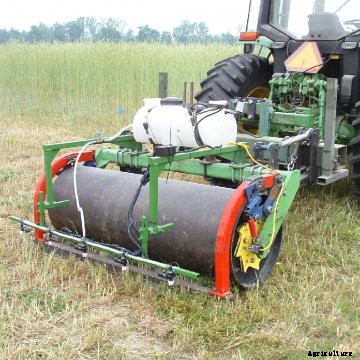 Traditional rolling-crimping machines are typically designed so that a weighted roller flattens the crop. Commonly, straight-bar crimping elements fixed to the roller rupture the stems of the cover crop so that termination of the plants is complete in two to three weeks.