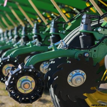 To accomplish this, FurrowForce has two stages. First, notched wheels close the furrow by shifting the soil inward to ensure proper seed-to-soil contact. Second, stitch wheels firm the soil around the seed to the proper density in order to maintain moisture in the soil. A closing load sensor links the two stages together, sensing weight carried by the stitch wheels and providing visibility to the closing performance on Precision Planting’s 20|20 display. The display will show the closing margin as well as a good closing percentage. A control module on each row, complete with a pneumatic air bag, automatically adjusts the force applied to that row.