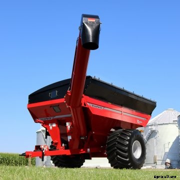 The new 1319, 1119, and 1019 models have capacities of 1,300, 1,100, and 1,000 bushels respectively. They can unload at speeds up to 620 bushels per minute.