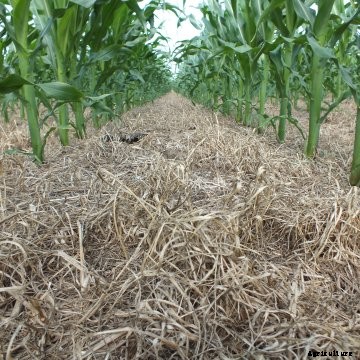 Before spring planting, both wheat residue and corn residue from previous crops appeared heavy enough to challenge the process of no-till seeding the field to soybeans.