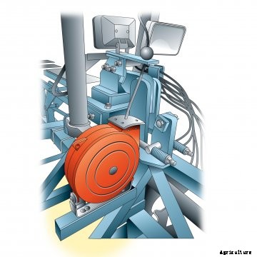 My grandnephews, Scott Orrin and Garret Hughes, built this A-frame bracket for the hopper, which lays down when not in use. By lifting the hopper this way, the grain doesn’t spill, and the bracket creates a place for shovels, guide blocks, and sample cans as we move the auger. When finished for the season, we go back to using the vertical factory hooks.