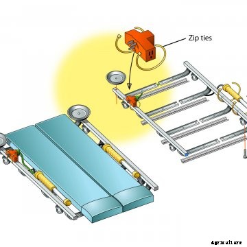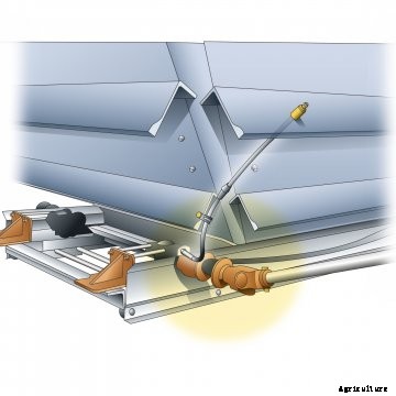Dan Meehan of Mulberry Grove, Illinois, relocated the grease zerk for the trap door on his trailer’s hopper bottom to a working height of 33 inches. He says the two-hour job took about $50 in materials.