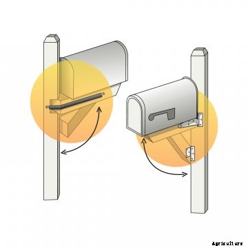 After his mailbox was knocked down twice in one winter, Eric Kroese of Hull, Iowa, mounted two barn door hinges on the back of its post. That way, the arm the mailbox is mounted on is free to swing away. An old screen door spring on the front makes it spring back.