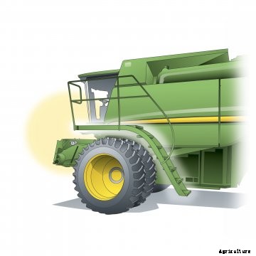 Maquoketa, Iowan Ron McDonald designed his shop-built steps at an angle instead of straight up and down to make the climb into the combine much easier. These stairs also swing out of the way for access to the side panel.