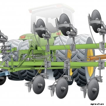 “I bought a used three-point sprayer at an auction. I took everything off and mounted coulters on it. Now I can hook that trailer behind it and sidedress fertilizer in the early summer,” he explains. Formerly, all the fertilizer went down in the spring at planting.