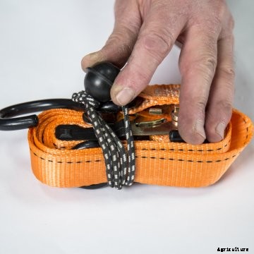 A PTO pin works ideally to control excess webbing on ratchet straps when storing them or to bind up extra strapping when in use on a trailer (to prevent the strapping from flapping around). Roll up the strapping and clip it snugly with the pin.