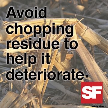 The challenge of getting massive amounts of corn residue broken down to prepare fields for planting has farmers looking longingly at flail or rotary choppers. But Richard Wolkowski points out that corn residue deteriorates more rapidly when left standing in the field.
