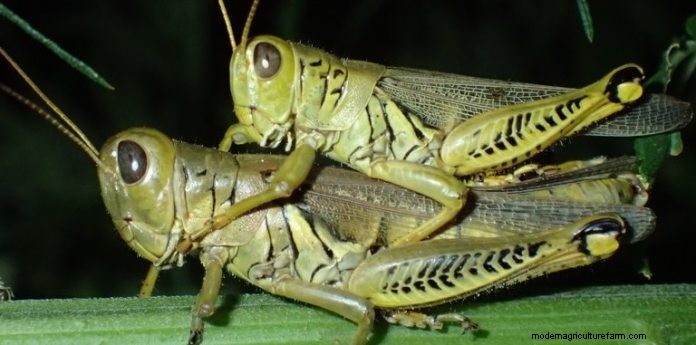 When grasshopper population are high and the damage is severe, they may only leave the leaf mid-ribs, pruned ears and barren stalks.