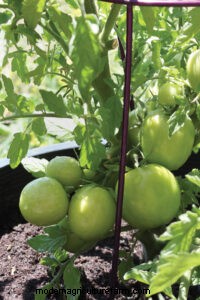 ‘Camp Joy’ is the first ripe tomato in my garden, ready in 70 days. This tomato is indeterminate, and disease- and crack-resistant. The plant doesn’t mind the cool days of spring and fall. The flavor of its fruits is tomato-y and deep, not overly sweet as with most cherry tomatoes. I pop them in my mouth as a snack every time I pass the 7-foot-tall plants in my garden. Two ‘Camp Joy’ plants are so prolific that I can freely eat them fresh, give them away to friends and neighbors, and still dry dozens to use in soups and chili in winter.