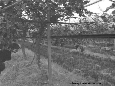 Because kiwis can live for a century or more, the supports must be built to last. Unlike grapes, kiwis grow best on a horizontal, flat surface, such as pergolas and T-bar trellises. Whichever system you choose, build it 6 feet high. This will make harvesting, pruning, and maintenance much easier on your back.