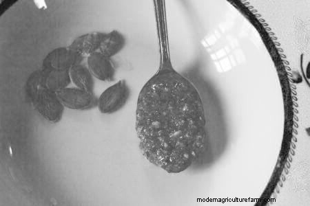 After soaking, I squeeze the seeds from the pulp and rinse in a colander until little or no pulp remains. I spread the seeds on a cookie sheet and leave in a warm, dry place for a few days, or until they are dry enough for storage, stirring frequently. Seeds are dry when the thin cellophane-like coating starts to come off. You won’t be able to easily dent the seed with your fingernail; the seeds will break, not bend. I store them in the refrigerator. The plumpest seeds are reserved for planting, and the rest are for eating.
