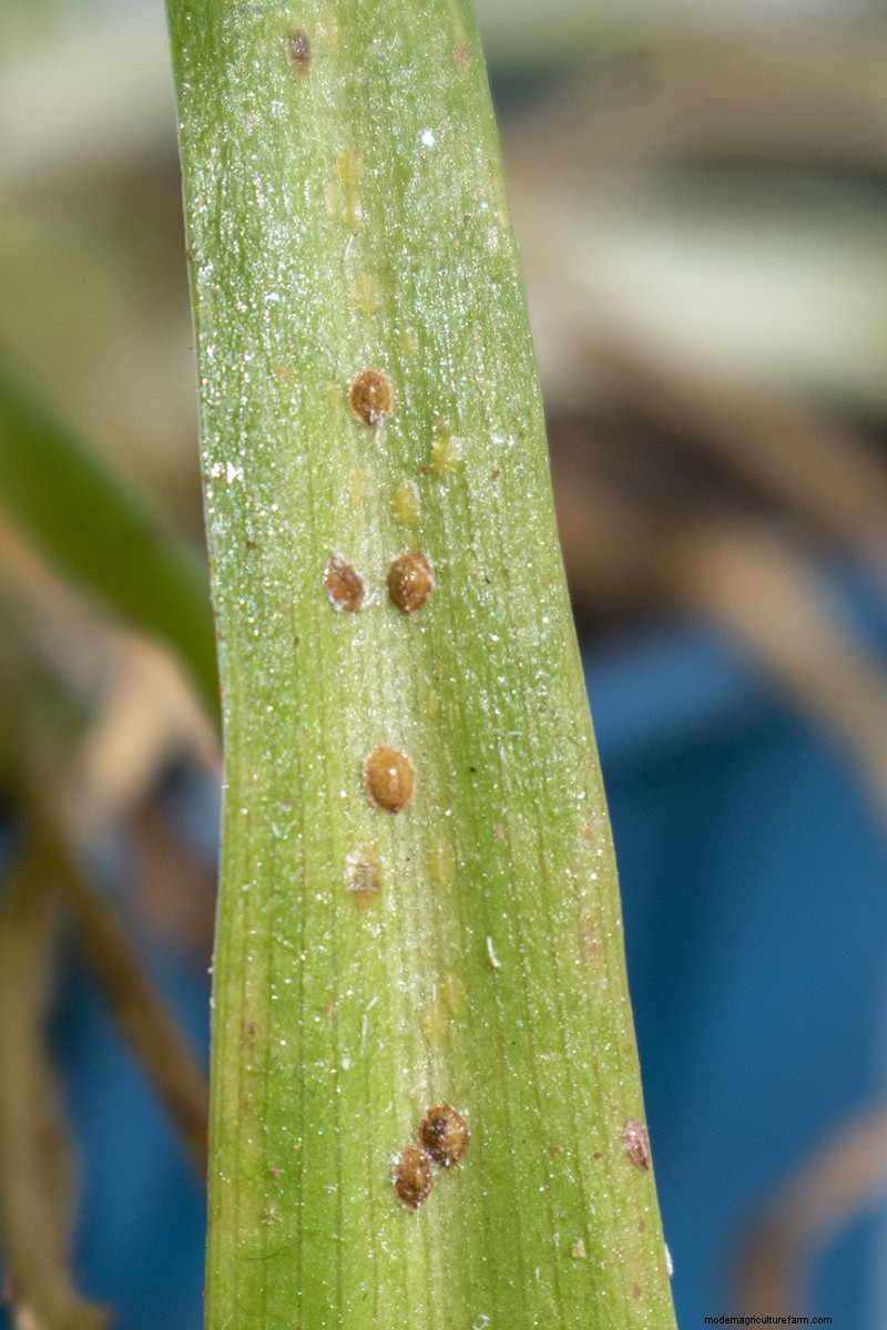 And by the time you can see the large brown bumps, you know there are dozens more, smaller ones that you can’t see feasting on your precious plant.