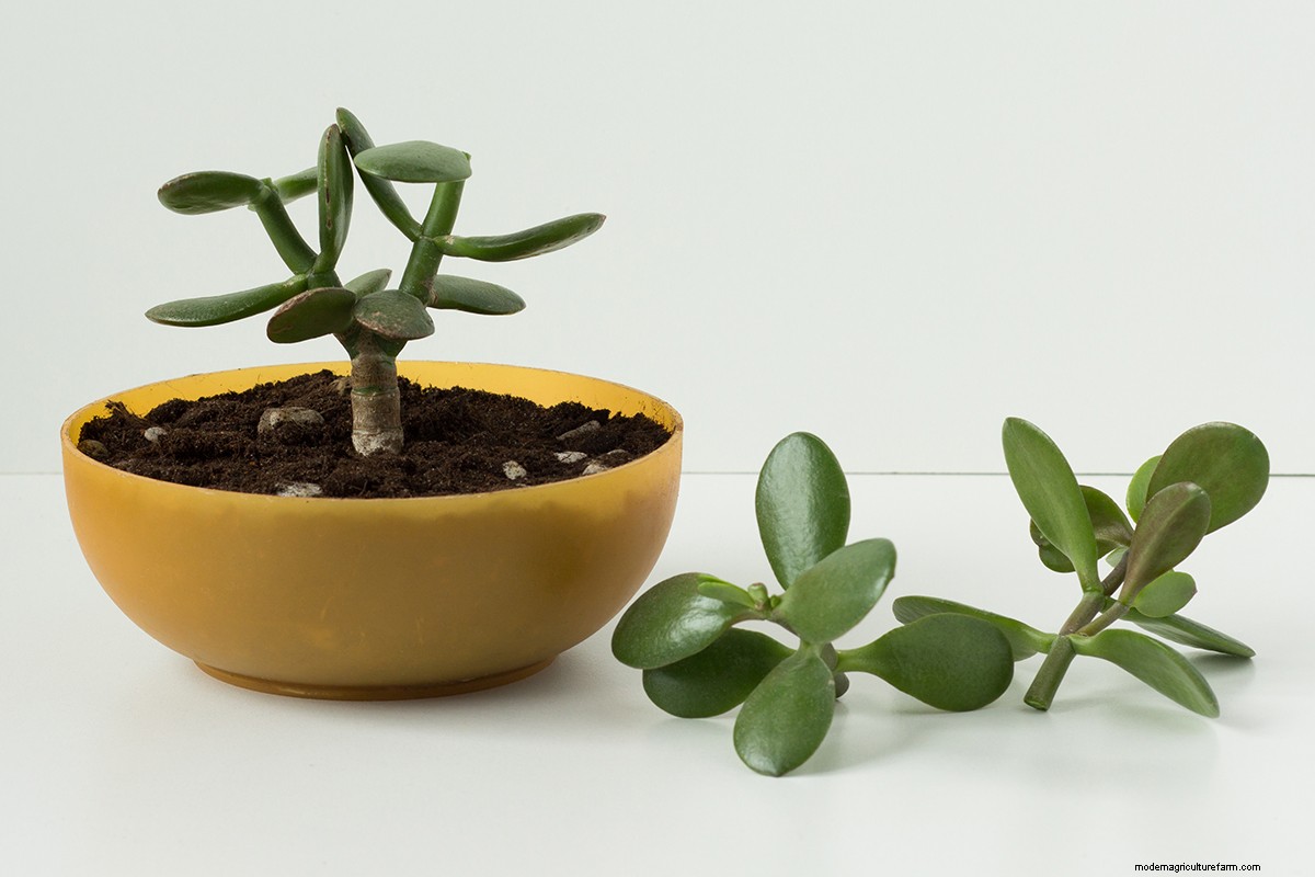 You can propagate a jade plant by taking either a stem or leaf cutting. In general, the stem cutting will give you more predictable results, as well as a much larger established plant. Stem cuttings seem to root better, too; very rarely will you have a failed stem cutting.