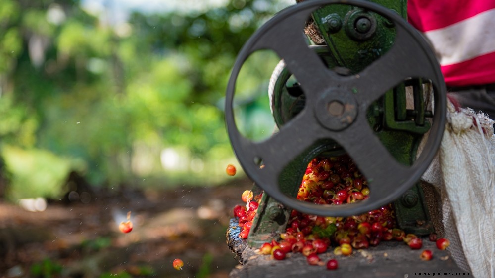 Within 24 hours of harvesting, the skins and pulp need to be removed so that you can get to the beans inside. To do this, squeeze the berries by hand until they pop out of their shells.