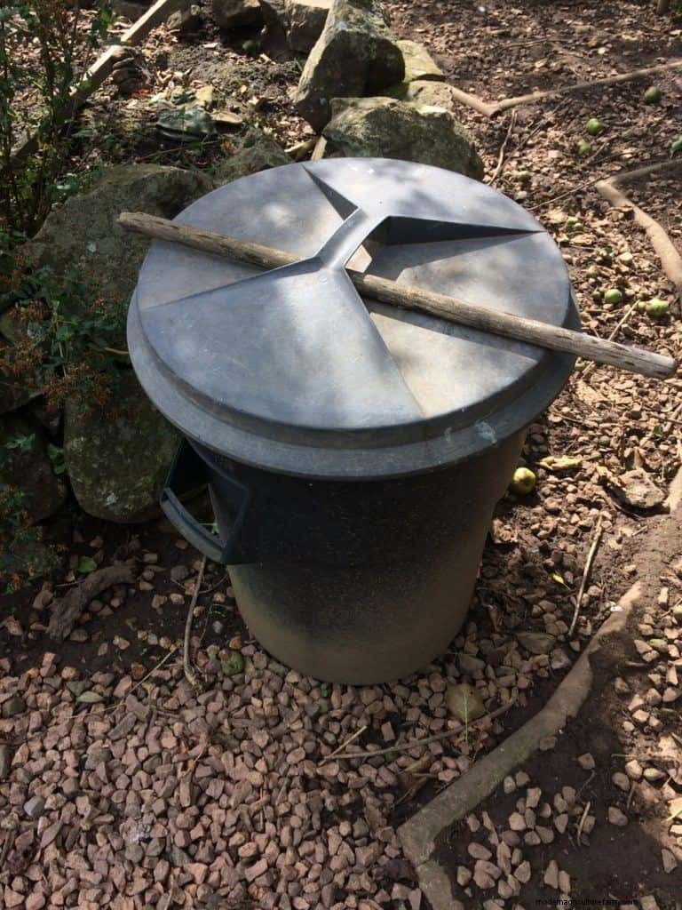 Place the lid on the receptacle. (This is an important step. As you will discover, comfrey liquid feed, or comfrey tea as it is sometimes called, is a stinky brew. It reeks to high heaven once the decomposition process begins. For this reason, you should also make sure that you are not making your comfrey tea too close to a seating area or to your home.)