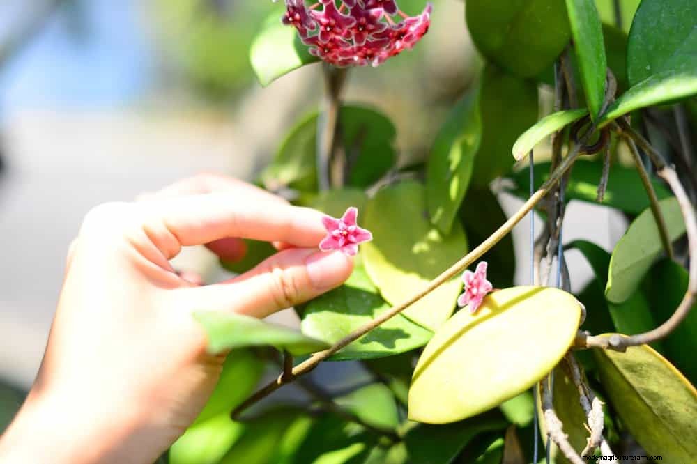 Hoya plants such as Hoya carnosa are known as wax plants because their leaves and flowers look like they are carved from wax.