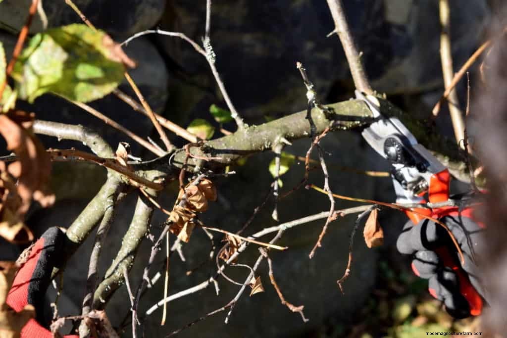Make sure to clean your pruners and other hand tools as well, to prevent spreading diseases, by dipping the blades into a solution of isopropyl alcohol for about 30 seconds before moving onto the next tree.