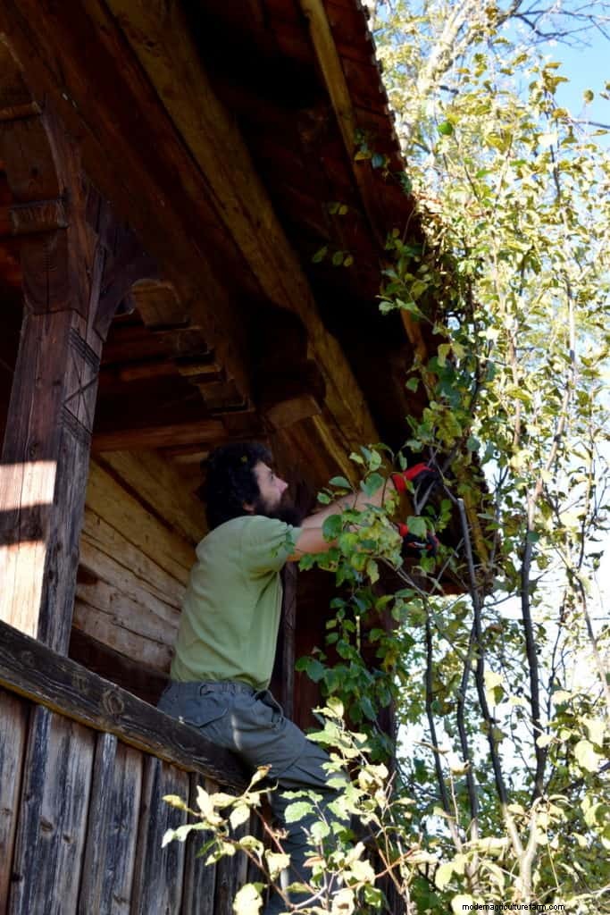 As you reach up into the higher branches with the help of a ladder, or another creative way, you will be trimming back the shape of the tree. Do this to encourage the branches to become thicker as they grow – as opposed to long and thin.