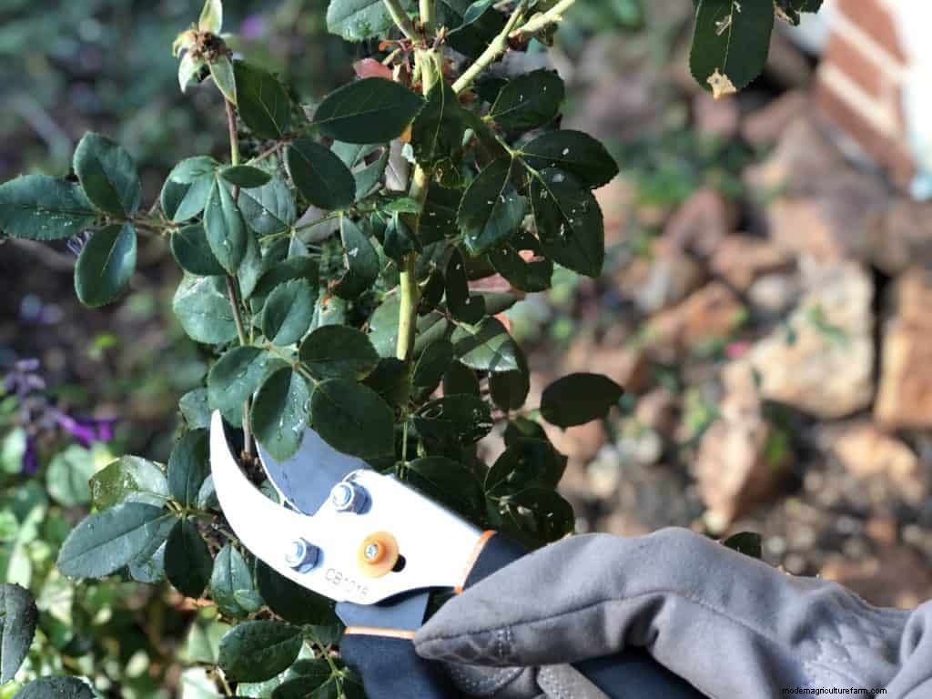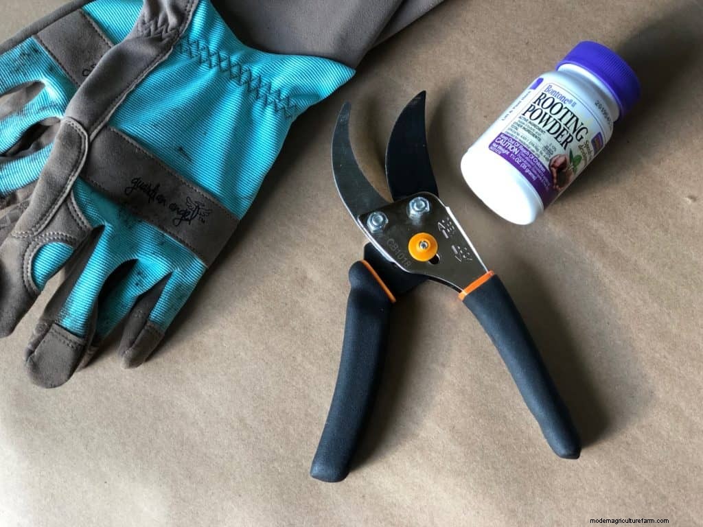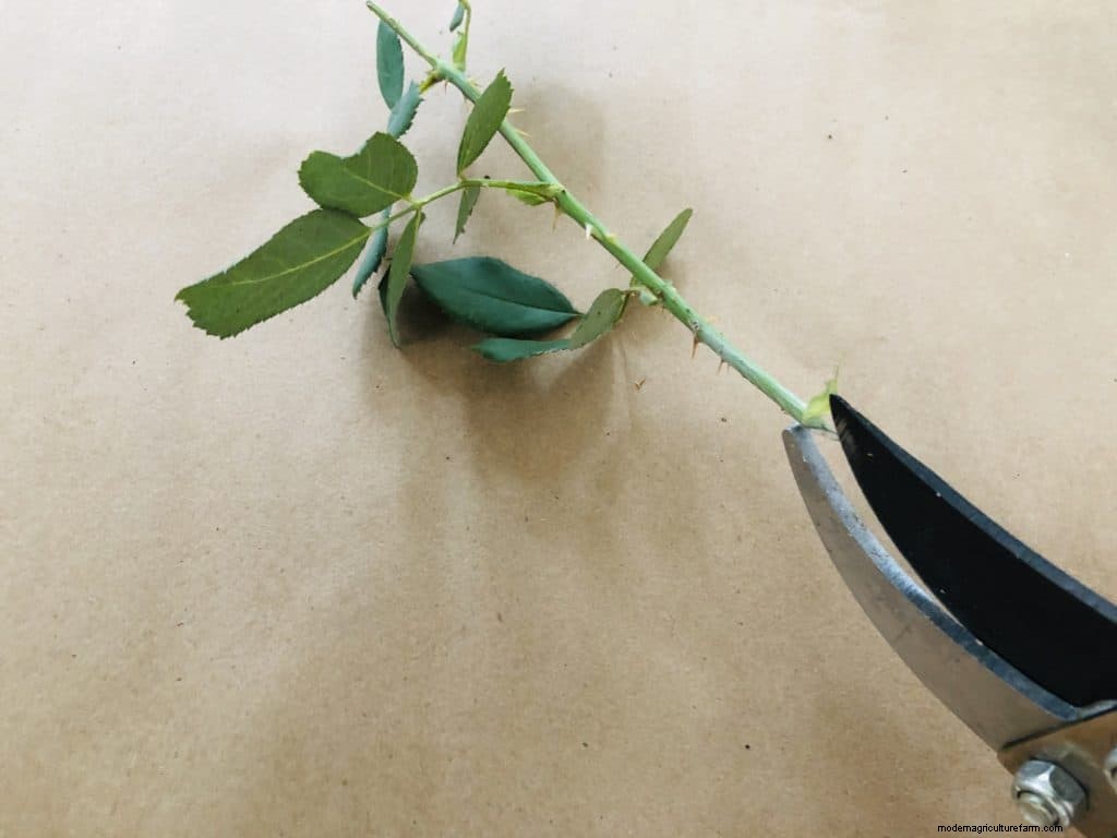 Once you remove the leaves, use your hand pruners and slice the stem on the bottom to prepare it for roots.