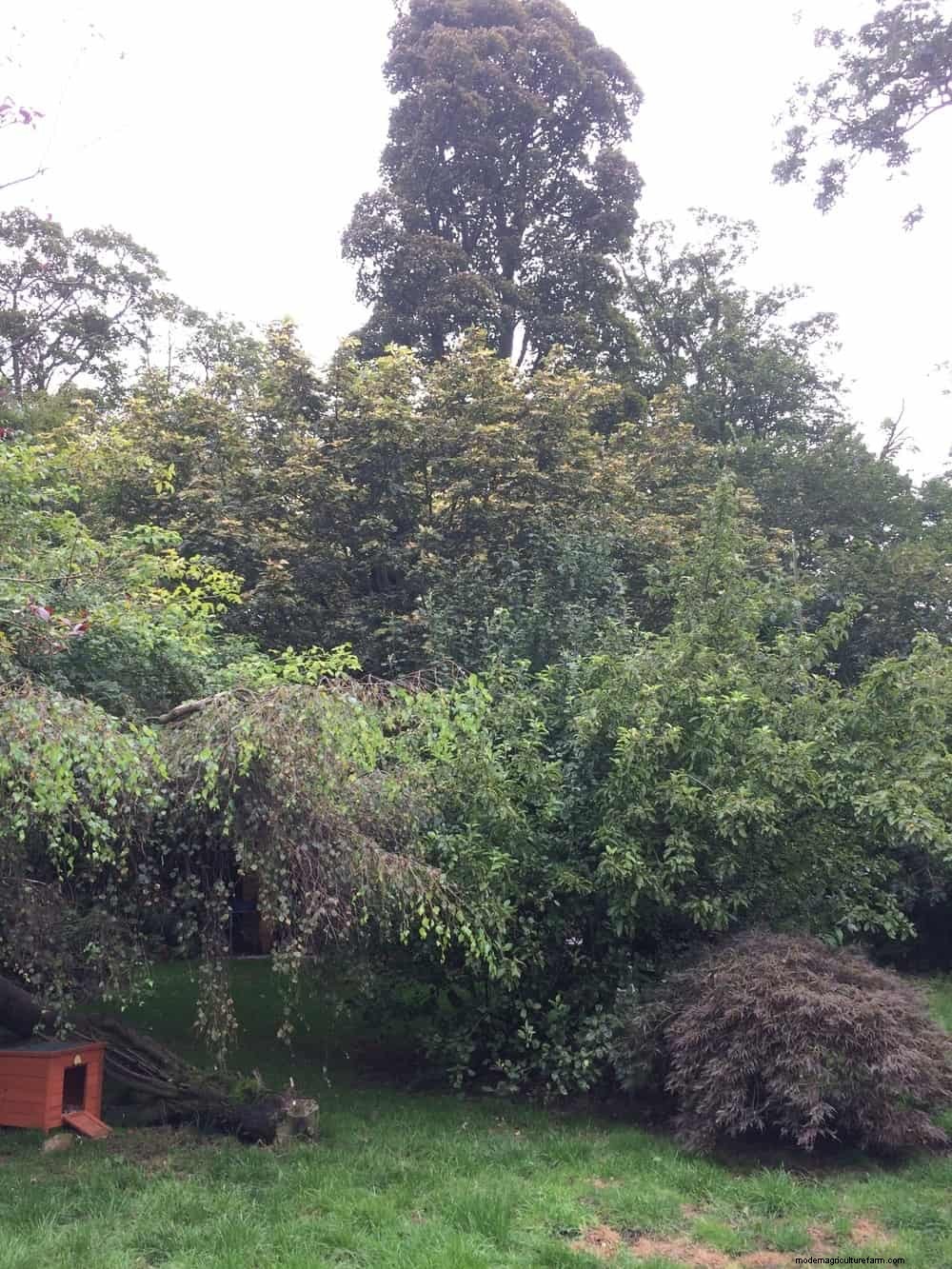We collect up leaves from our back garden – a relaxed and naturalistic lawned woodland area – while the leaves in the forest garden/ orchard are left to lie where they fall.