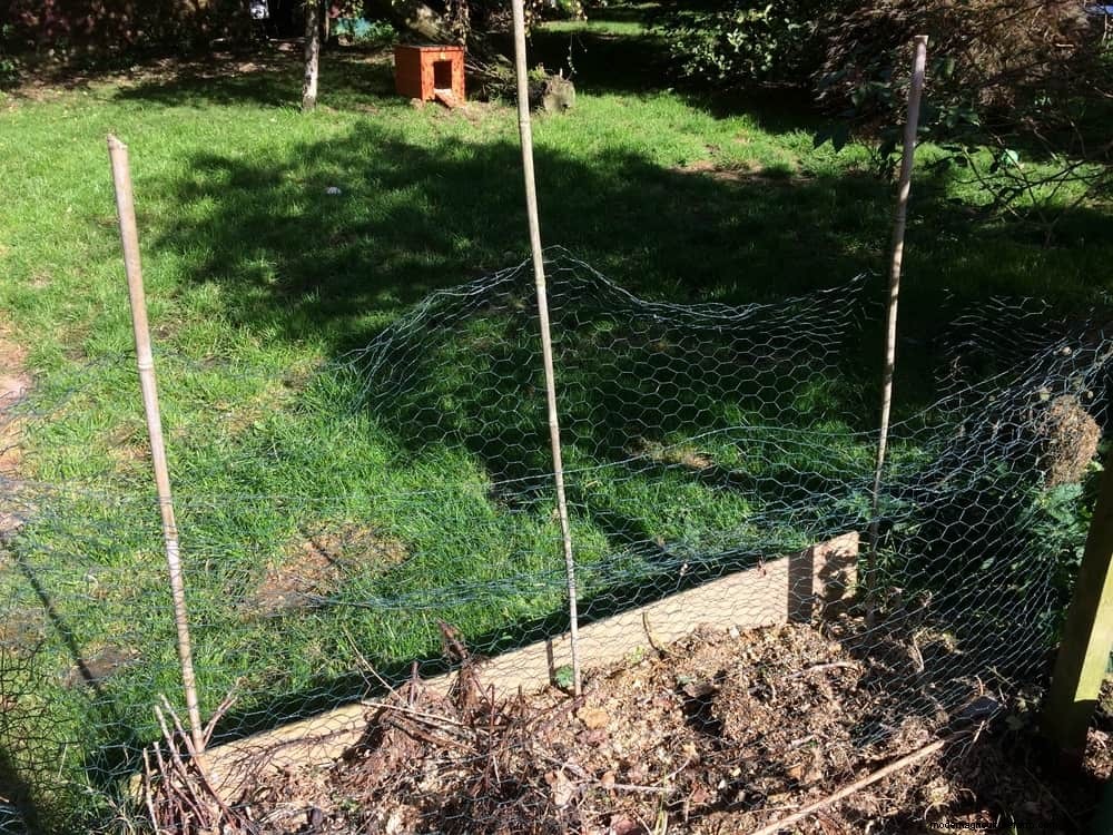 However, you could also create a free-standing bin using mesh and branches or canes, or make a more solid and permanent structure with a wooden framework or fencing stakes.